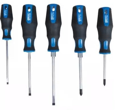 KS Tools ERGOTORQUE plus Screwdriver Set | 5-Piece, Slotted & Phillips, with 2-Component Handle